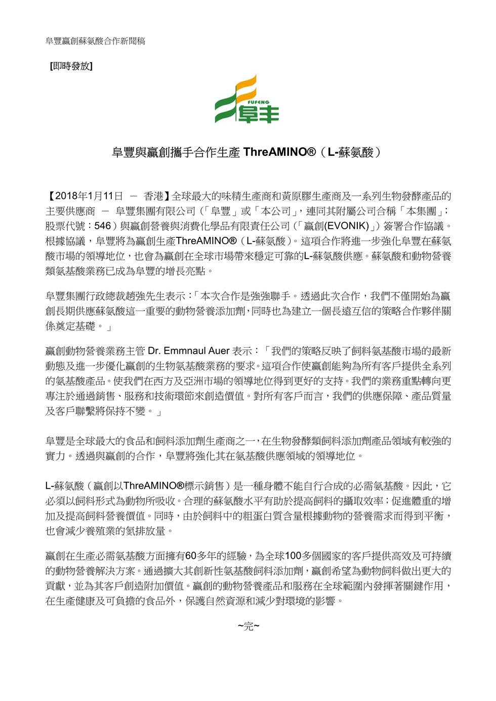 欧宝官方站网站登录入口-欧宝(中国)与赢创携手合作生产ThreAMINO®(L-苏氨酸)